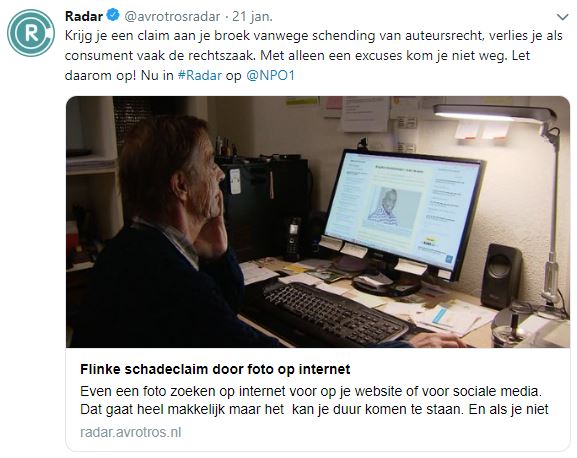 Voor een reeds op internet gepubliceerde foto wordt het tarief gerekend van een in opdracht gemaakte foto.