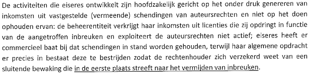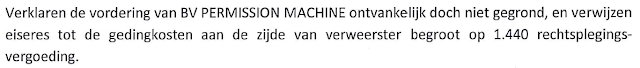 In België steekt de auteurswet net wat anders in elkaar. Ik houd enkel de jurisprudentie in Nederland bij en ken de verschillen niet. Uit het vonnis leid ik af dat ze vaste bedragen hebben voor rechtsplegingsvergoeding en niet de volledige proceskostenveroordeling zoals hier. Gedaagde krijgt eenzelfde bedrag dat door eiser gevorderd was als rechtsplegingsvergoeding.