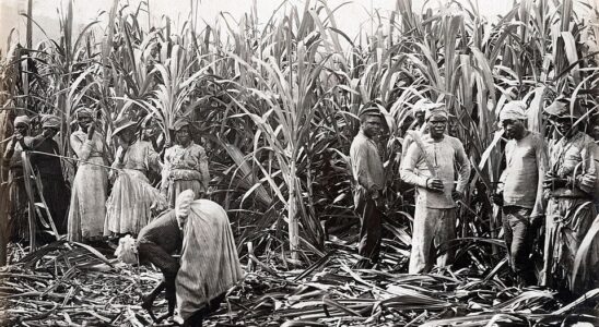 In het kader van werkende mensen: zwoegen vanaf het begin der tijden, vrouw die suikerriet snijdt, man die zijn net uitwerpt bij vloed. This is my island in the sun…