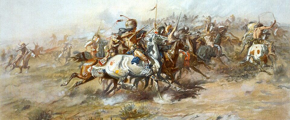 - Uitgelichte afbeelding: Door Charles Marion Russell Publiek domein, https://commons.wikimedia.org/w/index.php?curid=11291820