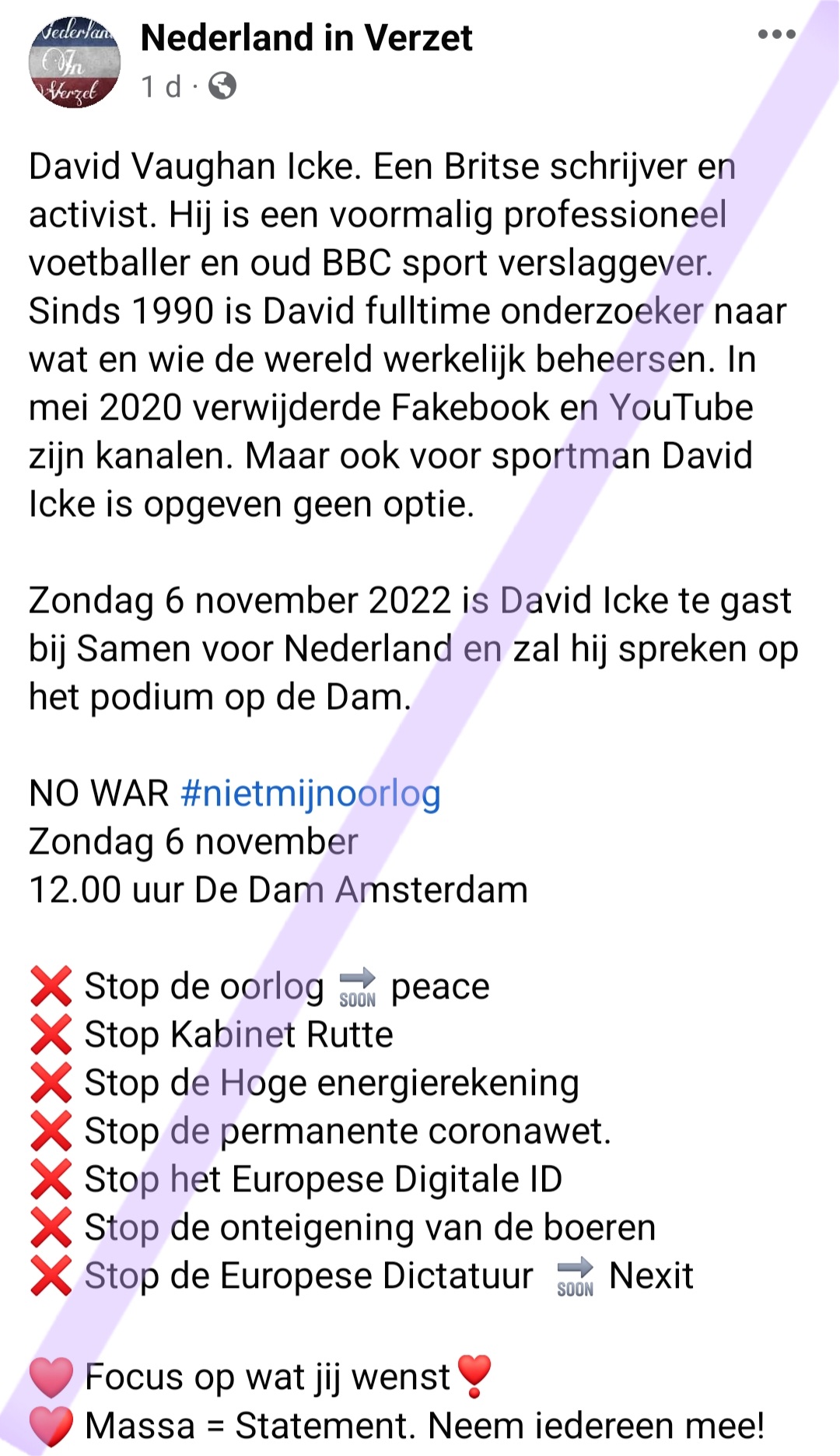 In Australië is Icke niet meer welkom, en wij stellen voor dat goede voorbeeld te volgen. Helaas is de Amsterdamse burgemeester Halsema een VVMU-fundi, dus een verbod zal waarschijnlijk van minister Dilan Yeşilgöz moeten komen.