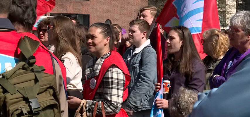 Dinsdag 14april werd op verscheidene plaatsen gestaakt tegen de nullijn voor rijksambtenaren. De twee grote vakcentrales mobiliseerden: