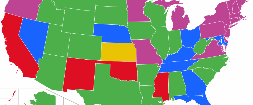 – Afbeelding: By TheTechnician27 – Own work. SVG derived from Blank USA, w territories 2.svg by Heitordp. Data from Unchained at Last., CC BY-SA 4.0, https://commons.wikimedia.org/w/index.php?curid=149673686