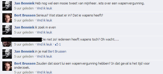 “[..] met iemand die niet alleen oproept tot het in huis halen van vuurwapens maar ook beweert al over een vuurwapenvergunning te beschikken?”